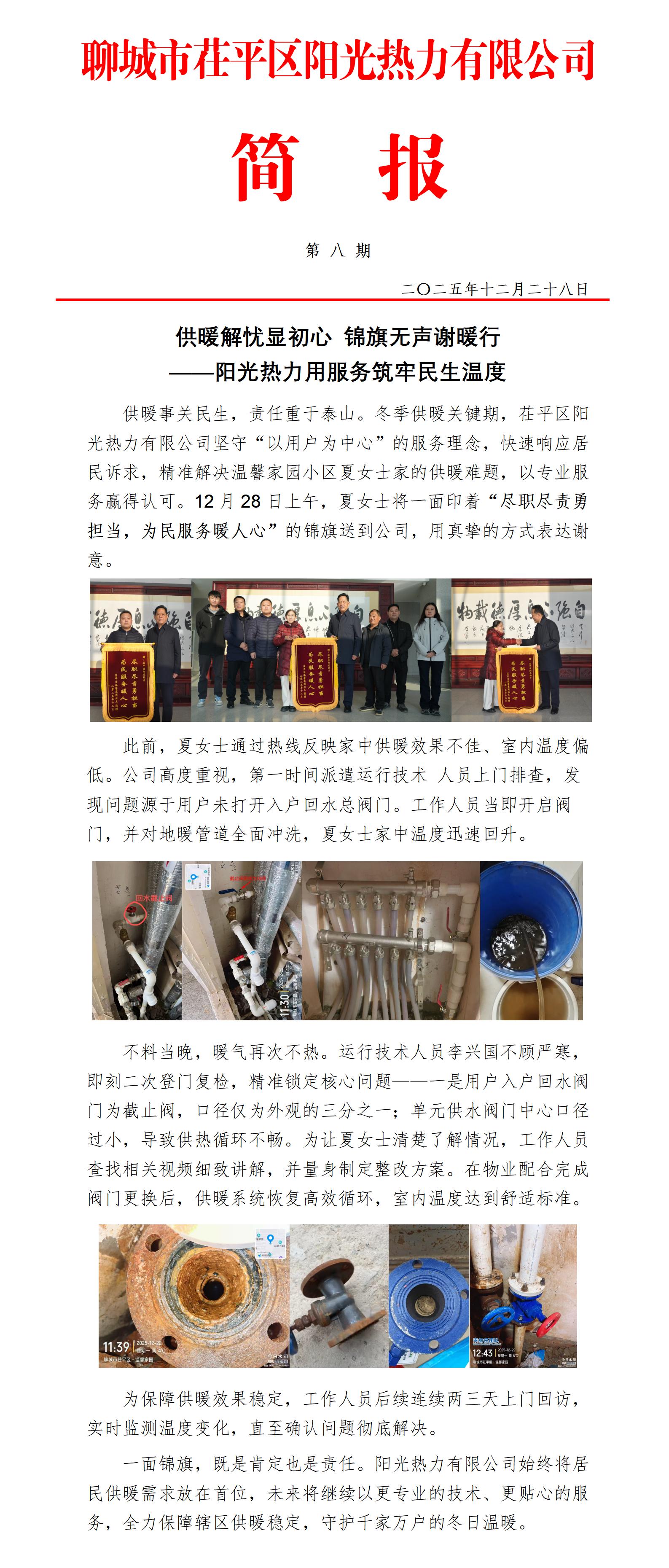 供暖解忧显初心 锦旗无声谢暖行 ——阳光热力用服务筑牢民生温度