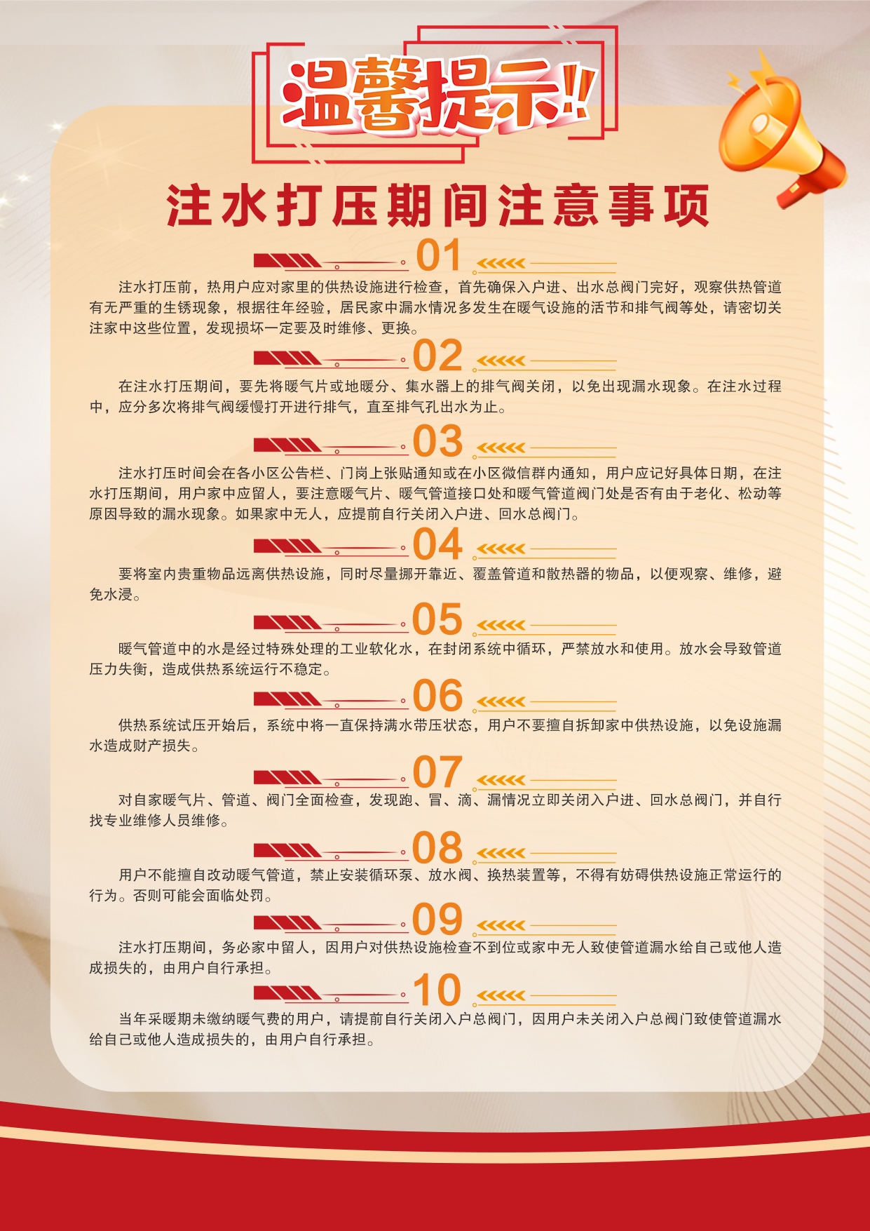 温馨提示:注水打压期间注意事项